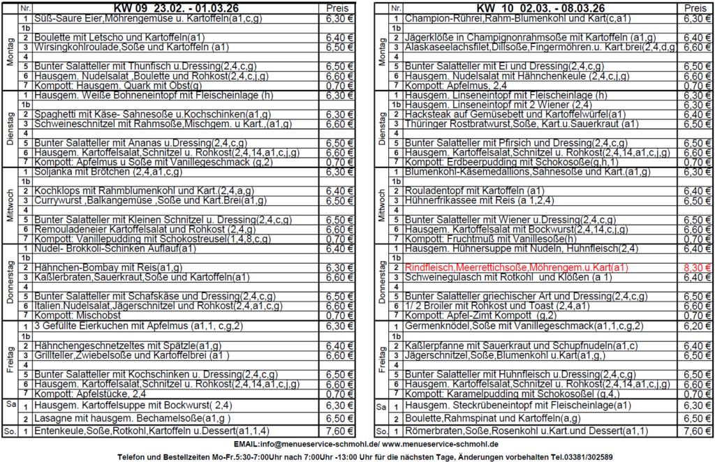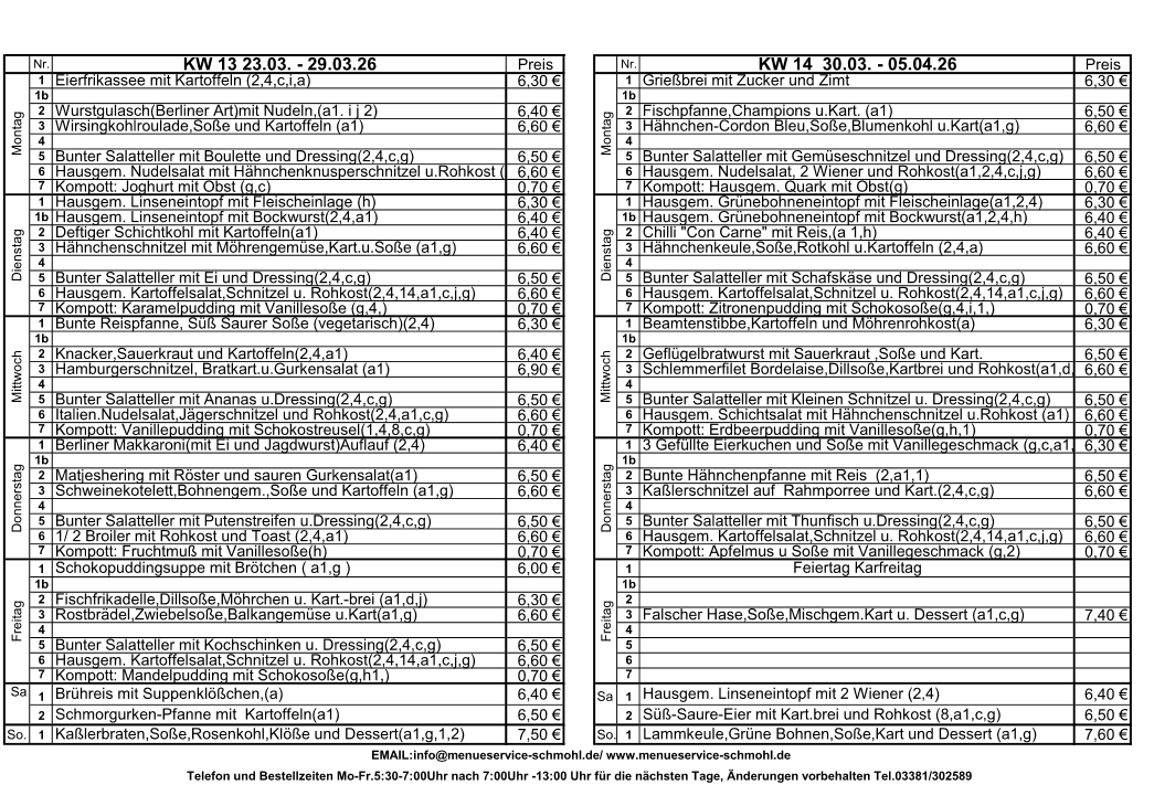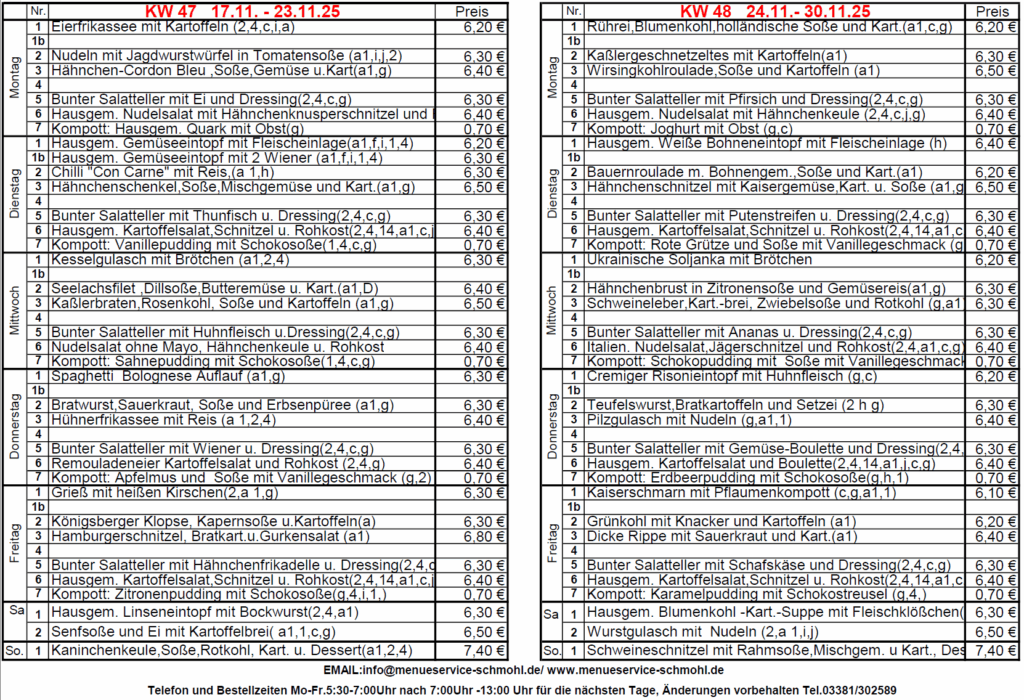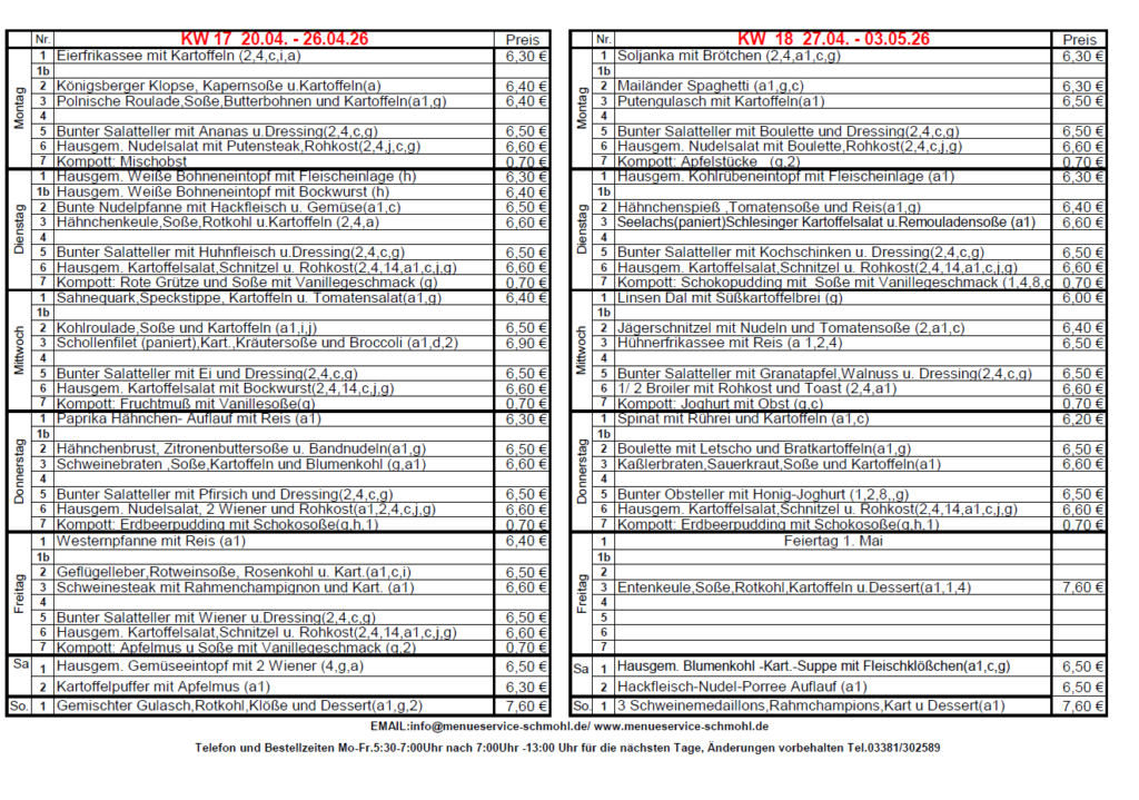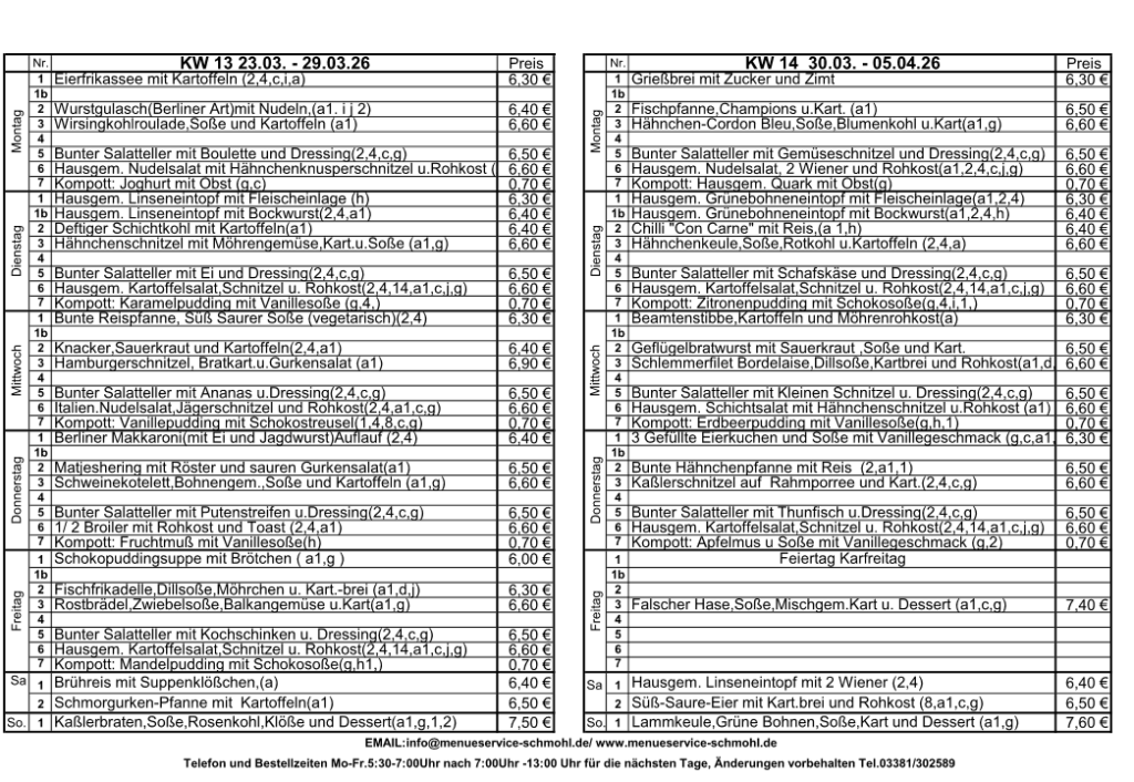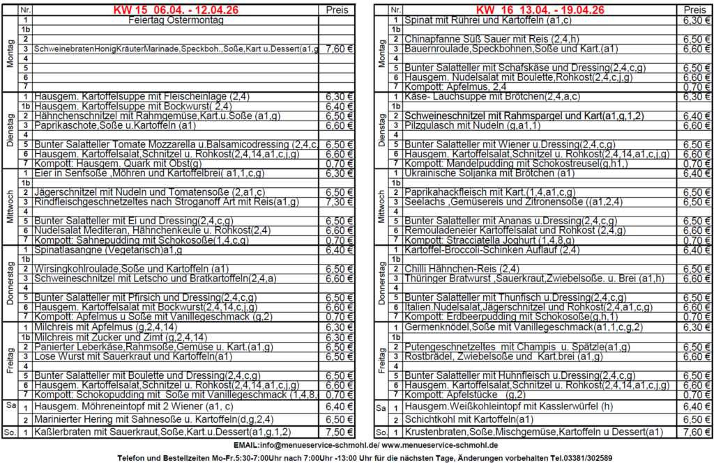 Wir liefern täglich frisch zubereitetes Essen an Privatkunden und Firmen in Brandenburg an der Havel. Dabei können Sie aus drei Menüs wählen – von der Hausmannskost bis zum Salat. Für jeden Geschmack ist etwas dabei. Für Abwechslung sorgen saisonale Gerichte, wie Oster- oder Weihnachtsmenüs.